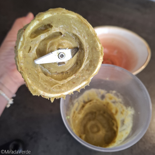 Das folgende Rezept ergibt zwei Portionen. Eine Übernachtung der Creme im Kühlschrank trägt nicht unbedingt zur optischen Verbesserung bei, auch wenn man sie luftdicht verschlossen aufbewahrt. Wenn euch also zwei Portionen auf einmal zu viel seid und ihr trotzdem eine schöne grüne Farbe erreichen wollt, dann empfehle ich euch erst mal nur die halbe Menge zuzubereiten.