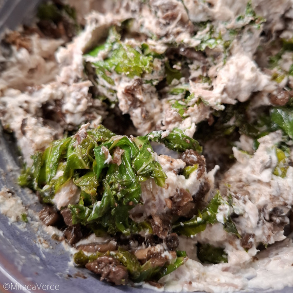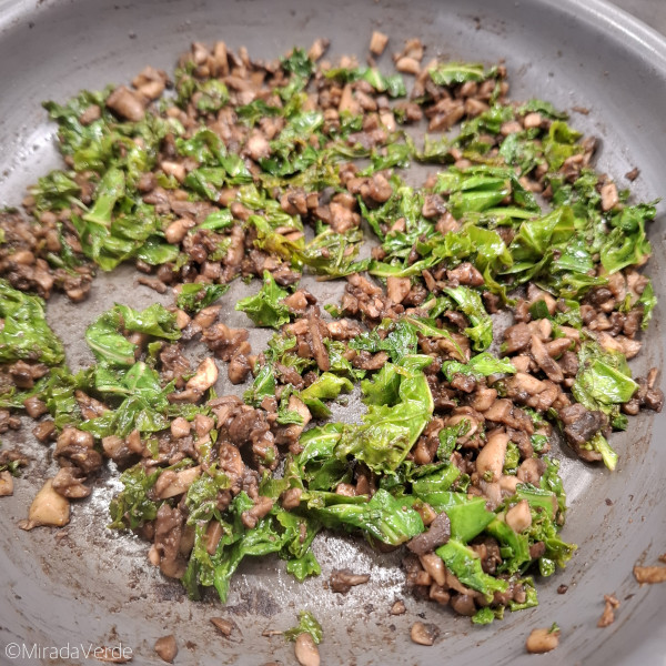 - Die erkaltete Pilz-Grünkohl-Mischung untermischen.