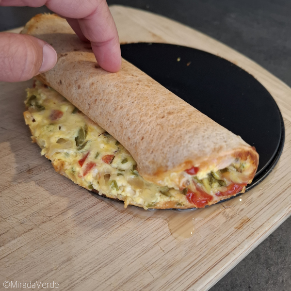 • Die Springform aus dem Ofen nehmen, den Ring abnehmen. Den fertigen Kräuter Lachs High Protein Wrap aufrollen. Am Teller anrichten oder fertig zum Mitnehmen machen.