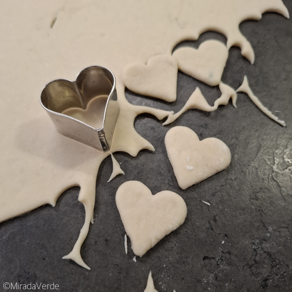 • Mit einem Keksausstecher Herzen ausstechen. Je kleiner, desto hübscher, je größer, desto schneller.