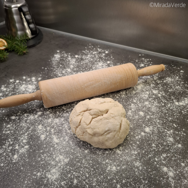 • Den Germteig auf einer bemehlten Arbeitsfläche auf 1 – 2 mm ausrollen.