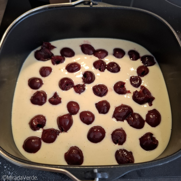 - Die Masse in eine Backform (die in den Airfryer passt) gießen.
