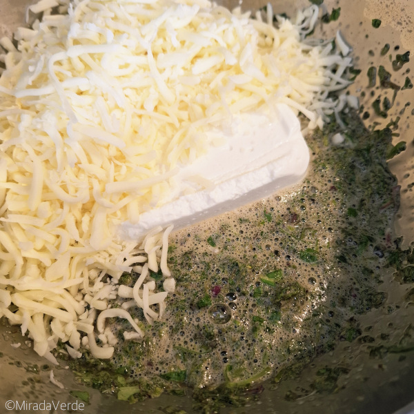 - 1 Packung (250 g) Magertopfen/Quark und 150 g geriebenen Mozzarella unterrühren.